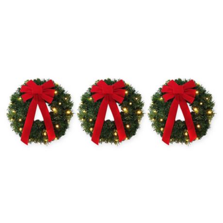 18 Inch Pre Lite Battery Operated Wreaths Set Of 3 Bed Bath Beyond