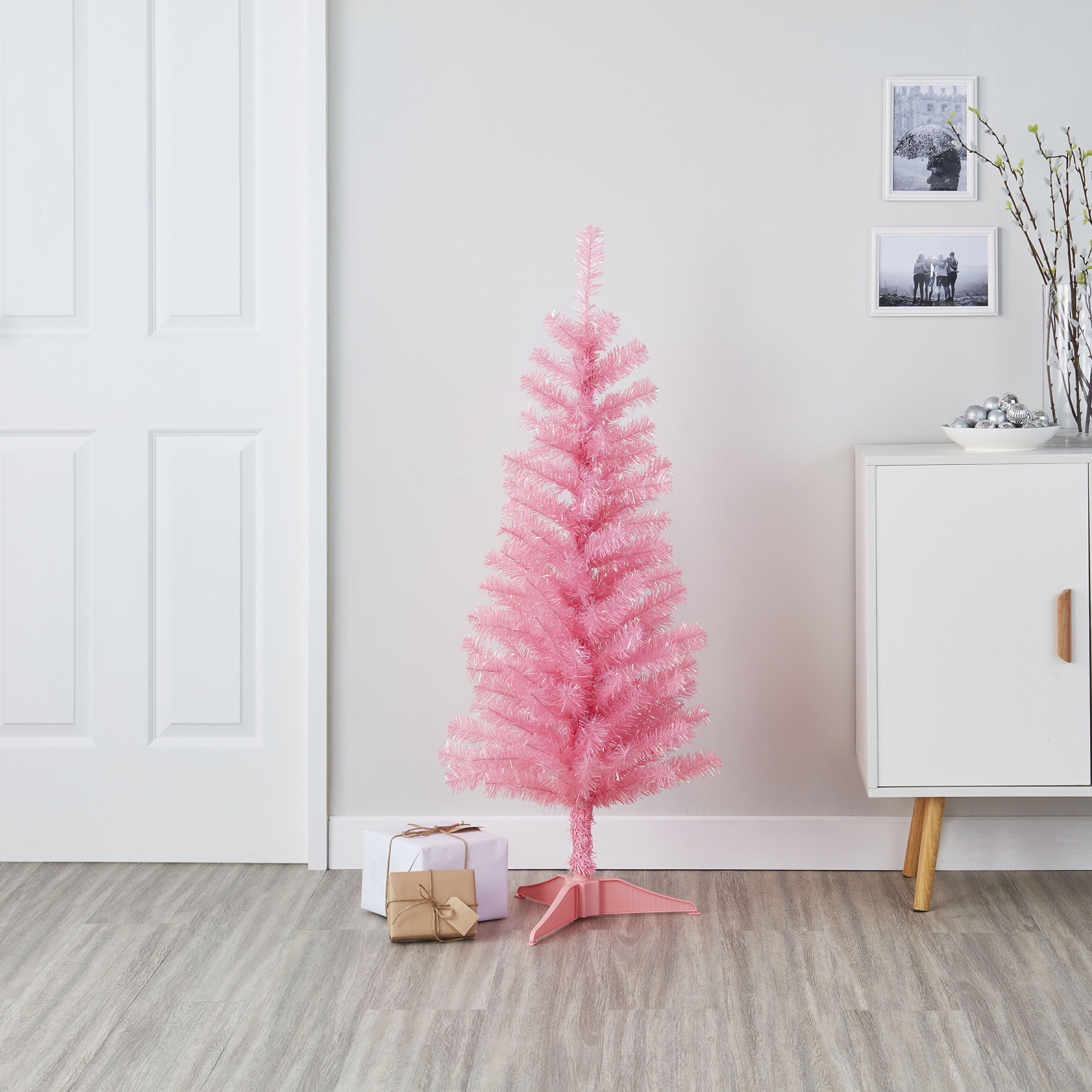 4ft Orelle Pink Tinsel Artificial Christmas Tree Diy At B Q